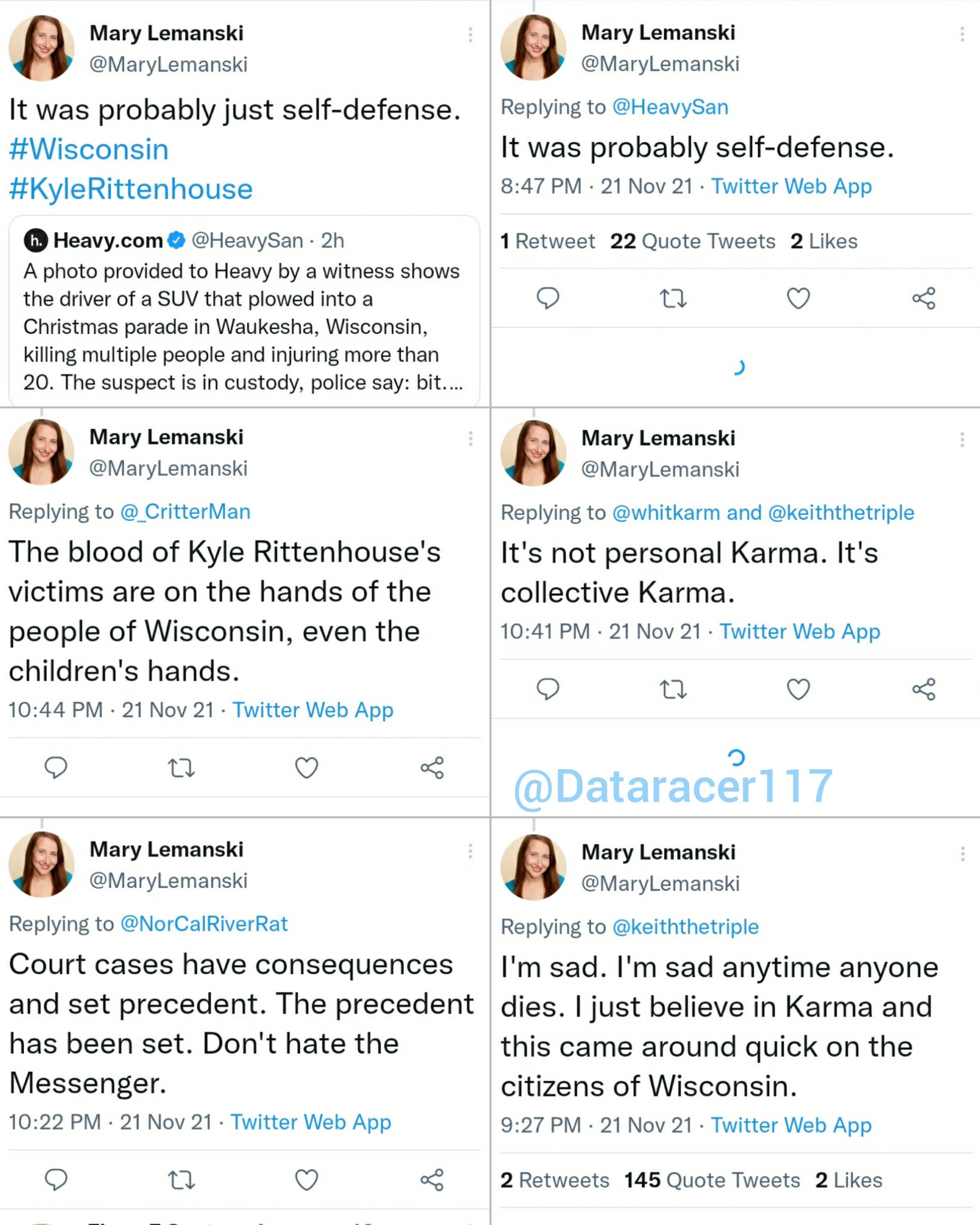 Dataracer On Twitter Mrandyngo Here Is All Of Mary Lemanski S Vile Tweets About The Waukesha Parade Murders These People Are Full Of Vile Hatred Https T Co Gcgcknyra1 Twitter